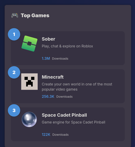 Sober is exclusively available on Flathub, whom published these figures in their Year In Review: https://flathub.org/en/year-in-review/2025